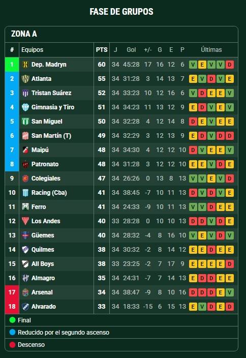 Los cuatro equipos que llegan con chances de enfrentar a Madryn son: Gimnasia de Mendoza (60), Estudiantes de Caseros (58), Deportivo Morón (57) y Estudiantes de Río Cuarto (57).