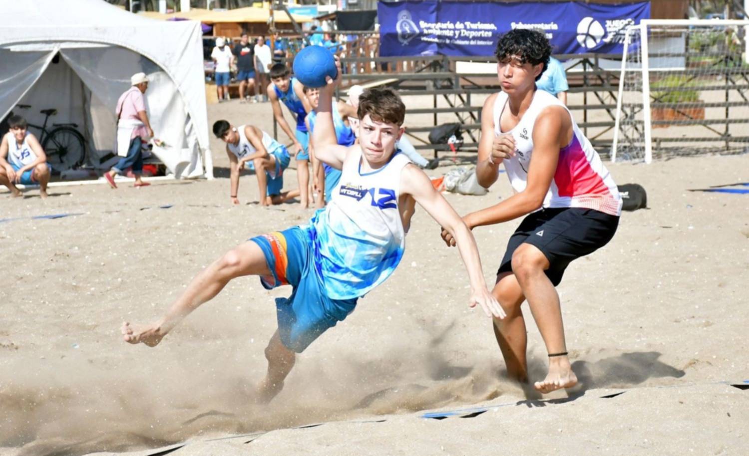 Beach handball tuvo la participación del equipo masculino disputando el duelo por el séptimo puesto. El equipochubutense se impuso con comodidad 2-0 (22-14, 16-12) ycerró el torneo con gran alegría, y el equipo femenino cerró su participación con un triunfo ante Corrientes por 2-0 (15-13, 15-12) para ubicarse en la 15° ubicación.