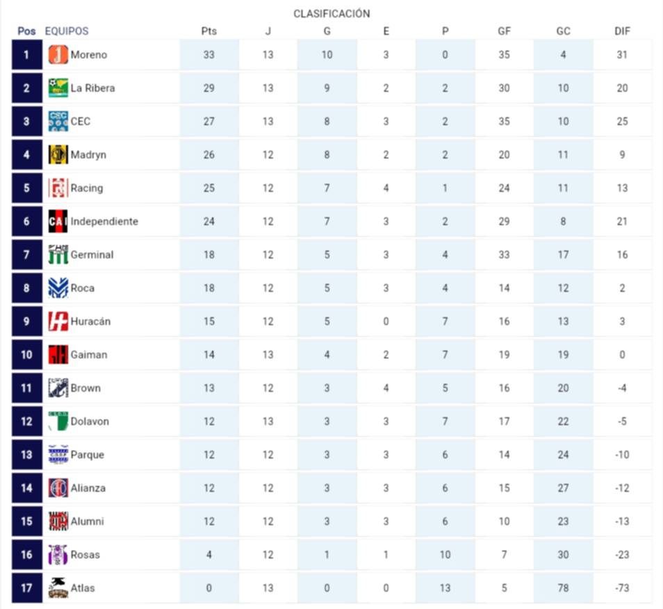 Con este resultado, el CEC alcanzó los 27 puntos y se mantiene en la zona alta de la tabla, a dos unidades del principal escolta -Defensores de La Ribera- y seis del único puntero -J.J. Moreno- con los mismos partidos disputados; por su parte, Gaiman se quedó con 14 puntos, en la décima ubicación.