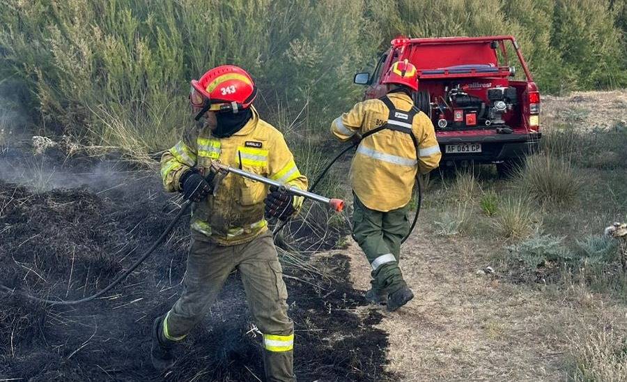 Los bomberos voluntarios de Rawson intervinieron esta tarde en dos incendios de pastizales consecutivos.