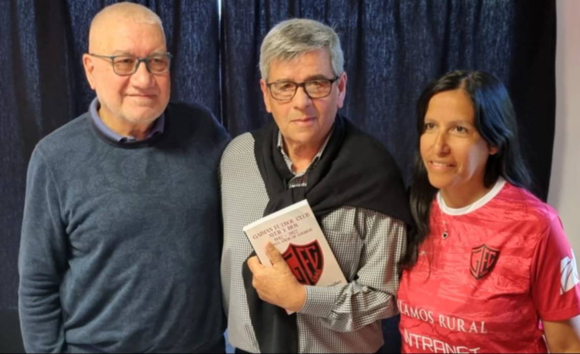En el final de la amena presentación el autor del libro Raúl Alberto González, junto a la titular del club, Natalia Poblete, le entregaron un ejemplar del libro a Carlos Figueroa, uno de los símbolos del Gaiman Fútbol Club.