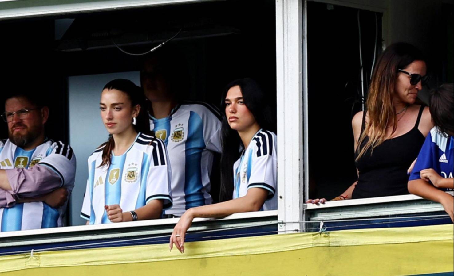 Dua Lipa llegó al estadio sobre la hora, junto a su equipo de trabajo, familia y seguridad privada, y se la vio con la nueva edición de la camiseta de la Selección Argentina para el Mundial del 2026.