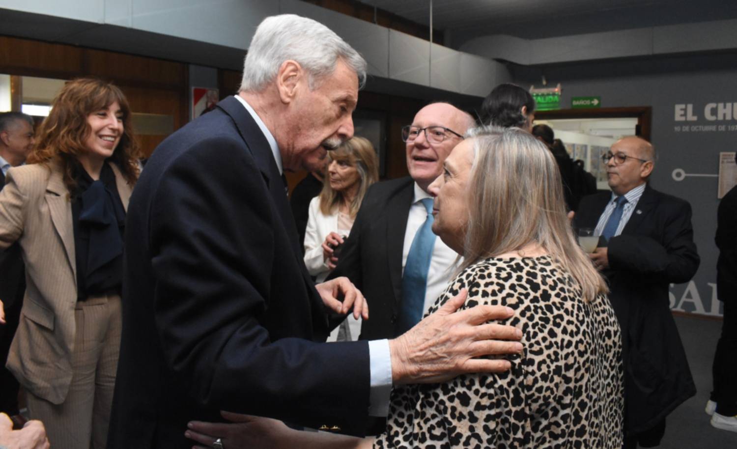 Uno de los momentos más sentidos fue la proyección de un audiovisual que repasó la vida y obra de José María Sáez y de Lidia Ostermann de Sáez, creadora del suplemento Chubutín. A través de imágenes y recuerdos, se evocaron hitos históricos, visitas presidenciales y también momentos dolorosos, como el criminal atentado incendiario de diciembre de 2021, aún impune y recordado como una herida abierta para la libertad de expresión.