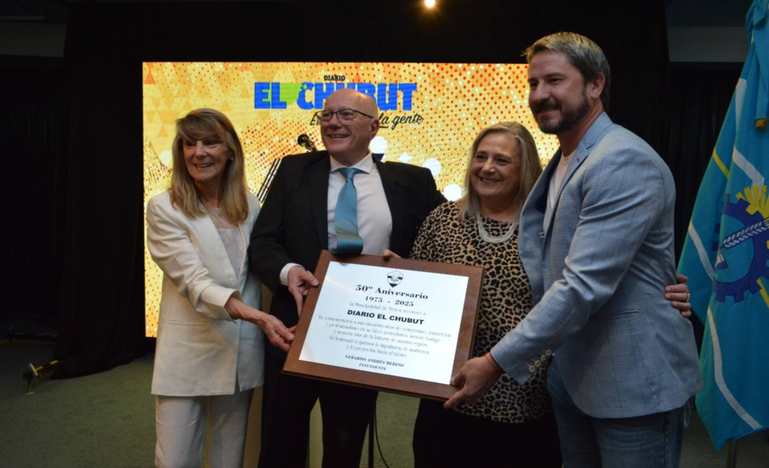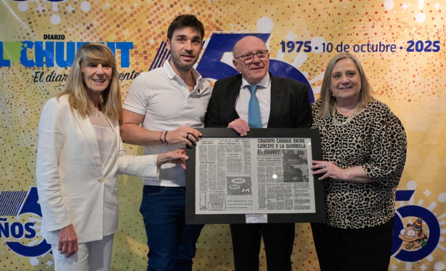 En un Salón Azul colmado de afecto y memoria compartida, Diario EL CHUBUT celebró el 10 de octubre sus 50 años de vida. Fundado en 1975 por José María Sáez, hoy continúa bajo la conducción de sus hijos José María y Lili Sáez, junto a su hermana Elsita, y con la participación activa de la tercera generación familiar, reafirmando un legado que ya forma parte de la identidad de Chubut.