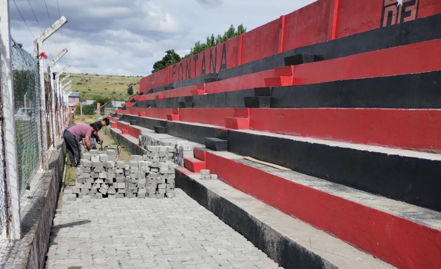 Por otra parte, retomaron también la colocación de adoquines en el sector de tribunas, una mejora iniciada hace un tiempo y que permitirá darle una terminación estética y funcional de primer nivel al estadio.