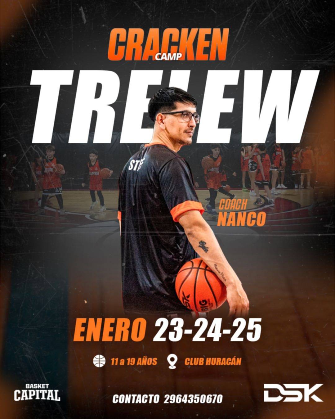 El 23, 24 y 25 de enero, el gimnasio "Atilio Viglione" del Club Social y Deportivo Huracán de Trelew, se llevará a cabo el Cracken Camp de Básquetbol, a cargo del Coach Nanco, dirigido a chicos y chicas de 11 a 19 años.