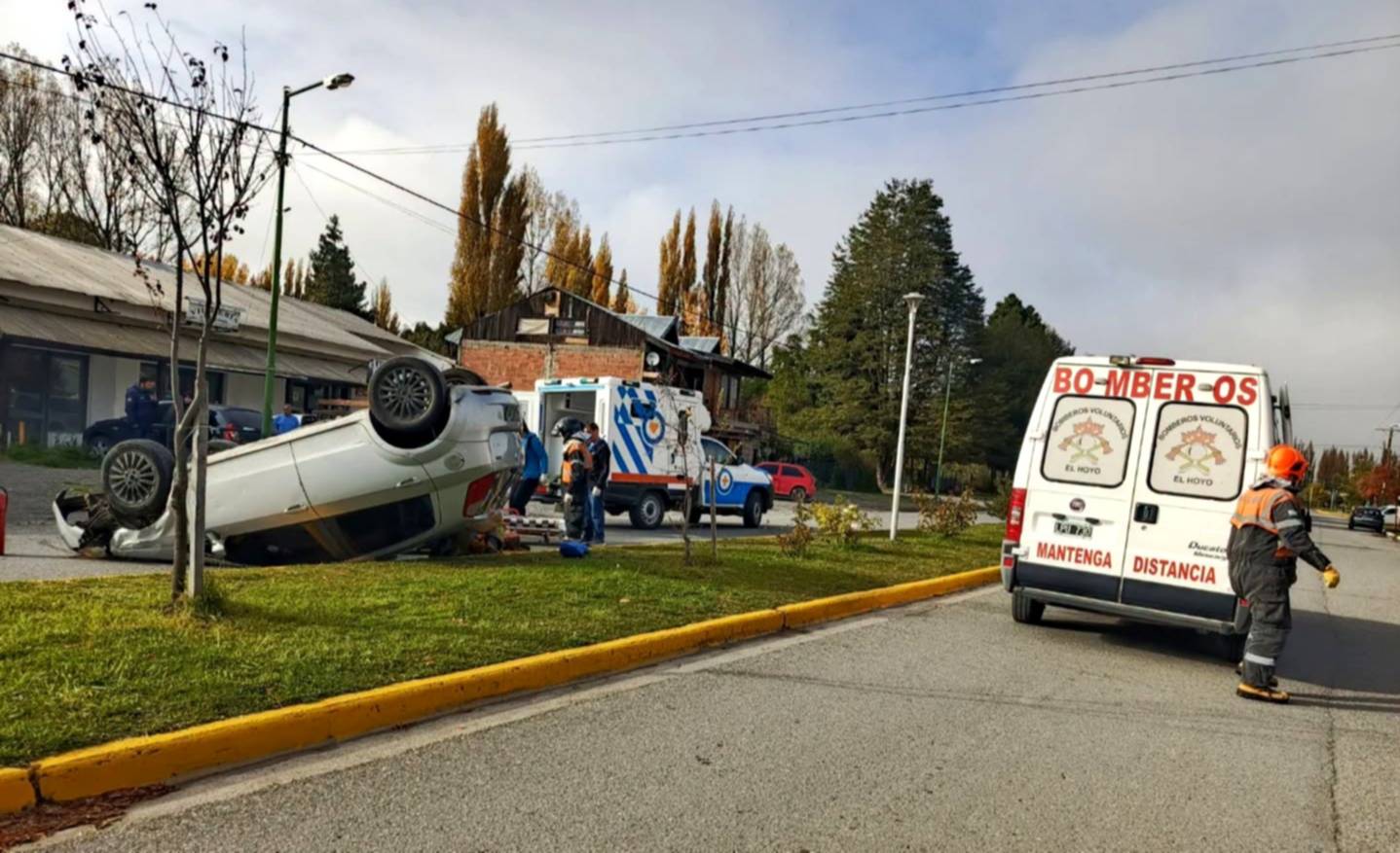 Vuelco en pleno centro de El Hoyo
