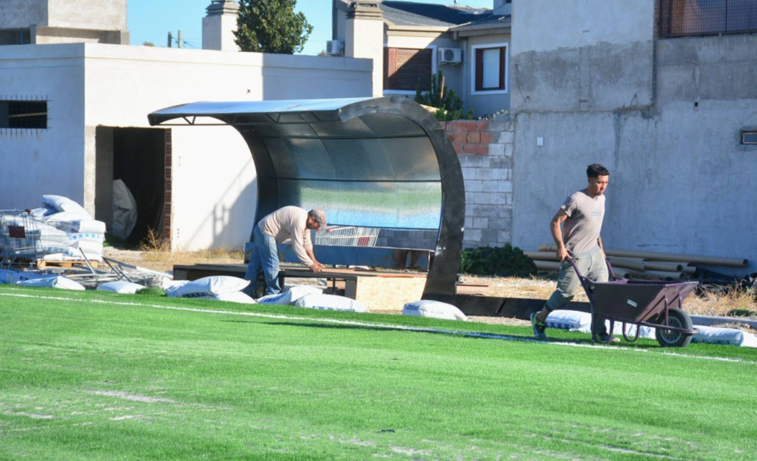 Este jueves se pasará a desparramar las bolsas de caucho y de esta manera ya dejar en condiciones la cancha.