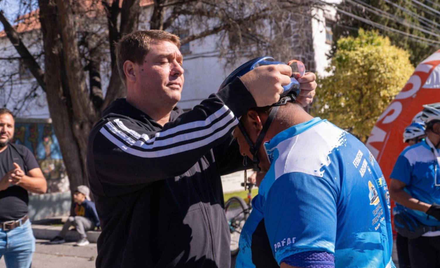 Biss los recibió en la capital provincial y les entregó medallas y presentes. “Esta tarde recibimos a los más de 50 ciclistas que completaron la travesía que unió la cordillera con nuestra costa, un recorrido dedicado este año a homenajear a Roque Carrasco. Pude saludarlo y felicitarlo por este merecido reconocimiento, que destaca su aporte y pasión por el ciclismo local”, expresó el intendente en sus redes sociales.