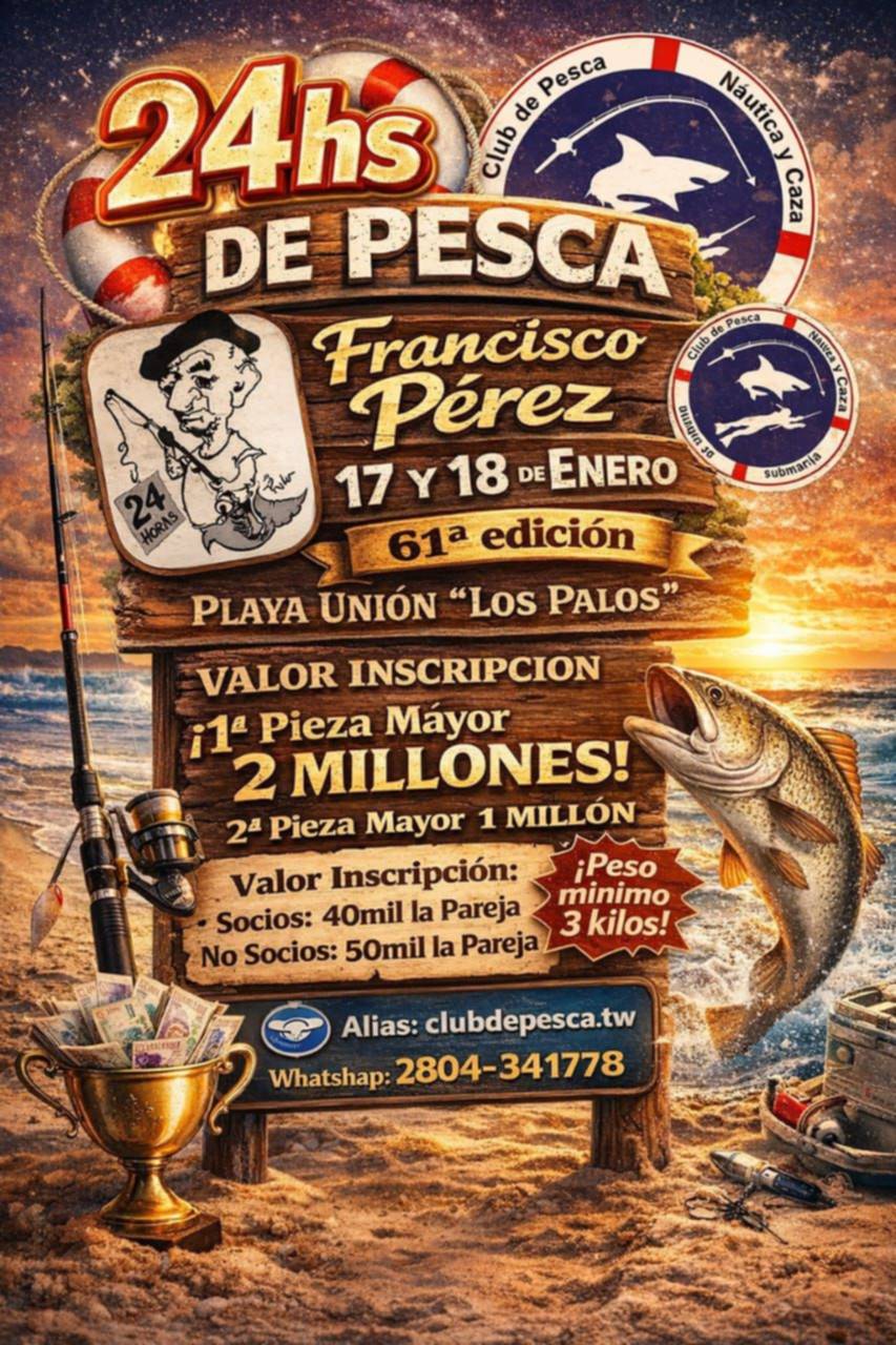 Este fin de semana, en el Sector de Los Palos de Playa Unión, el Club de Pesca Náutica y Caza Submarina de Trelew llevará adelante la 61° edición del tradicional concurso de 24 horas "Francisco Pérez".