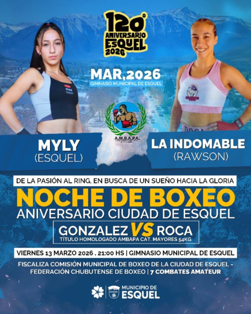 Con la organización de la Municipalidad de Esquel a través de la Subsecretaría de Deportes y el acompañamiento de Chubut Deportes; se confirmó el programa oficial de combates que se desarrollarán el próximo viernes 13 de marzo en el gimnasio municipal “León Camilo Catena” desde las 21 horas, con la participación de púgiles de distintos puntos de la región.