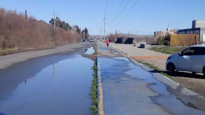 El problema ocurre en la calle Capitán Murga, casi en la intersección con Musters. Vecinos de la zona reclaman que hace tres días viven esta incómoda situación y advierten que ya se está hundiendo el asfalto.