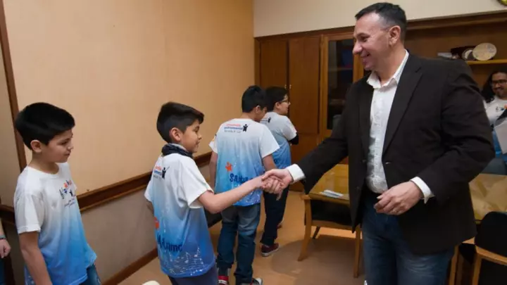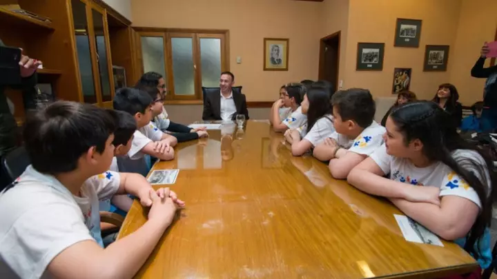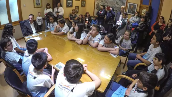 Alumnos de la Escuela N°220 de Trelew fueron recibidos por el Intendente Adrián Maderna, en su despacho, para ser reconocidos por su ensamble musical, ganador del Eisteddfod de la Juventud, la pasada semana en Gaiman.