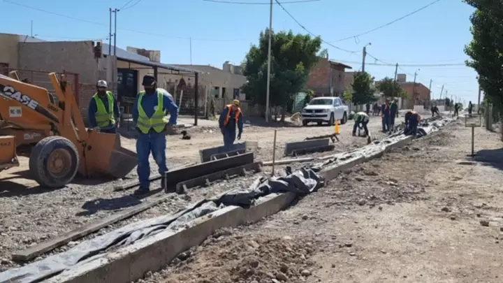 Avanzan obras de cordón cuneta en Trelew