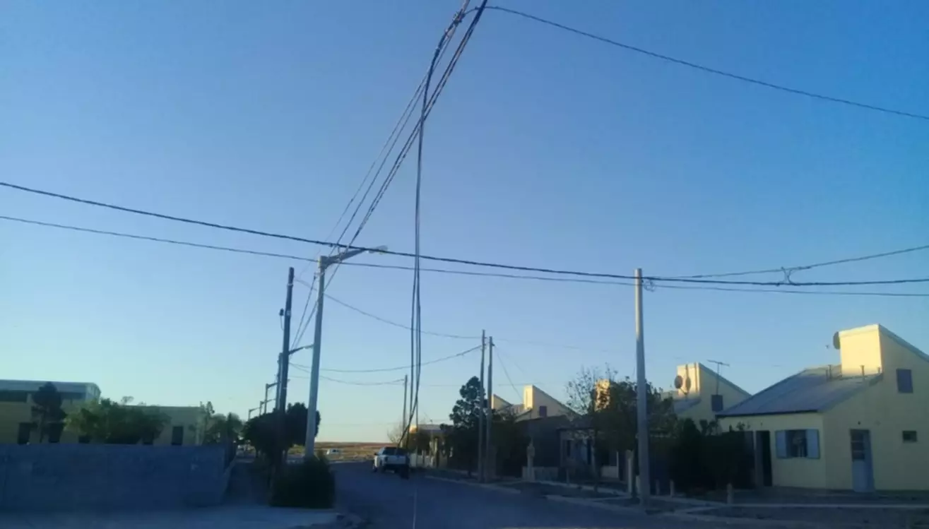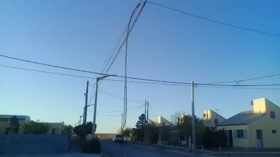 Una vecina se contactó al Whatsapp de El Chubut para denunciar el estado de un cableado en el Barrio 46 viviendas.