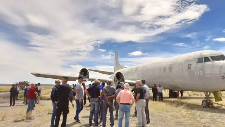 El Lockheed Electra de la Armada Argentina ya esta en el Aeroclub de Trelew y será utilizado para las prácticas del curso de azafatas