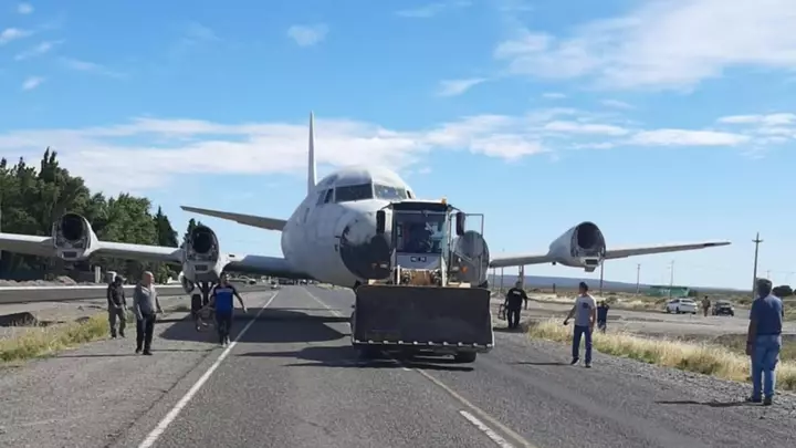 La maniobra de traslado del imponente avión fue coordinada entre personal de Vialidad Nacional, Provincial, Gendarmería Nacional y Guardia Urbana. El tránsito estuvo cortado desde la BAAZ (Base Aeronaval Almirante Zar) y el Aeroclub de Trelew, por Ruta Nacional N° 3.