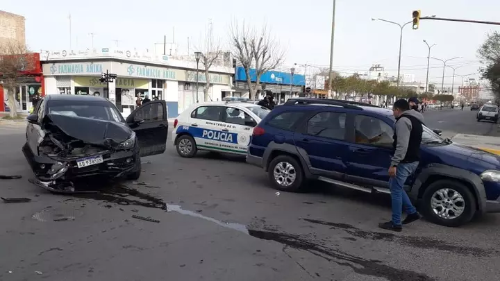 Fuerte choque entre dos vehículos en céntrica esquina de Trelew