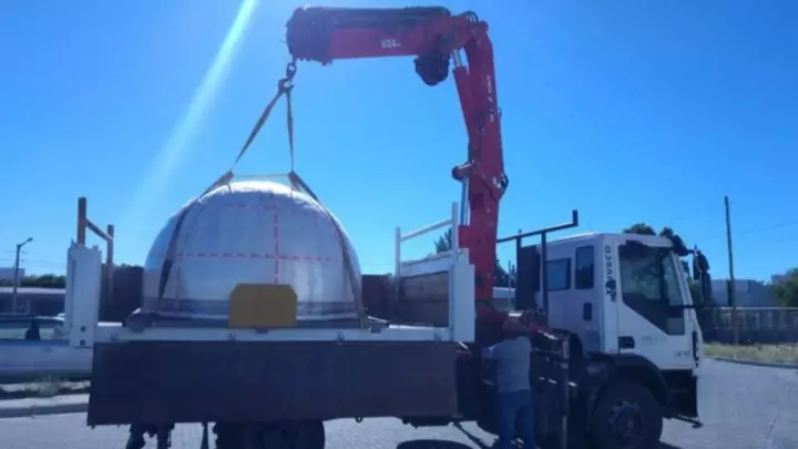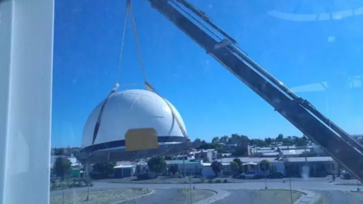 Instalan la nueva cúpula giratoria en el Observatorio de Trelew