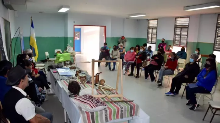 Este sábado a la mañana dio comienzo el taller de hilado y telar mapuche en las instalaciones de la Escuela N°744, que es dictado por la artesana mapuche-tehuelche Alda Torres.