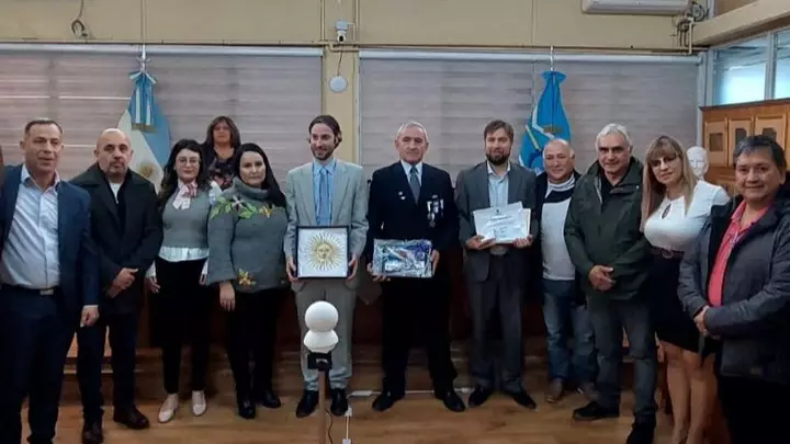 En el inicio de la sesión ordinaria, en el marco de los 40 años del Hundimiento del ARA General Belgrano se procedió a obsequiar una Placa de reconocimiento- entregada por el edil Leandro Espinosa- y una bandera de ceremonia- otorgada por Juan Aguilar- al cabo principal aeronáutico de comunicaciones helicopterista, José María Gómez, tripulante del ARA General Belgrano. En tanto, estuvieron acompañando al tripulante homenajeado, sus familiares y ex combatientes de la Guerra de Malvinas, quienes también le hicieron entrega de un presente.