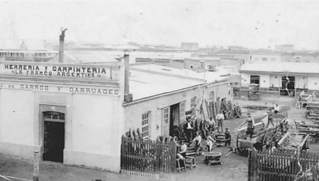 El taller de carros y carruajes. Fue en 1912. A la izquierda de la imagen se ve el edificio de lo que sería el Distrito Militar
