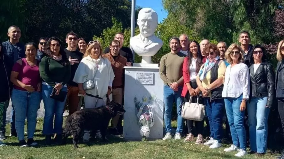 También, “cuando me tocó ser presidente del Comité decidimos emplazar este busto porque nos pareció importante. De hecho, para Alfonsín Trelew era importante, vino varias veces a la ciudad. Y ya en calidad de presidente, estuvo presente en los 100 años de nuestra localidad, cuando en ese entonces el intendente era Alfredo García”.