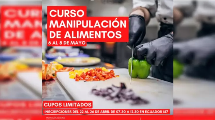 El curso se dictará los días 6, 7 y 8 de mayo en la Cámara de Industria y Comercio del Este del Chubut (CICECh), Avenida Fontana 355, con inscripción previa hasta el viernes 26 de abril en el horario de 7:30 a 12:30, en las oficinas de Bromatología, en Ecuador 157 y online en https://www.trelew.gov.ar/manipulación-de-alimentos/.