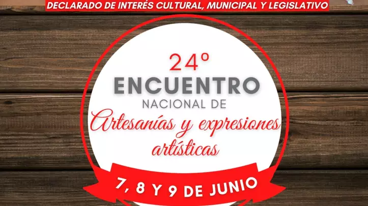 Del 7 al 9 de junio se realizará la 24° edición del Encuentro Nacional de Artesanías y expresiones artísticas. Las tres jornadas se desarrollarán en la Escuela N° 751, de 12.30 a 22.30. Fue declarado de interés cultural, municipal y legislativo.