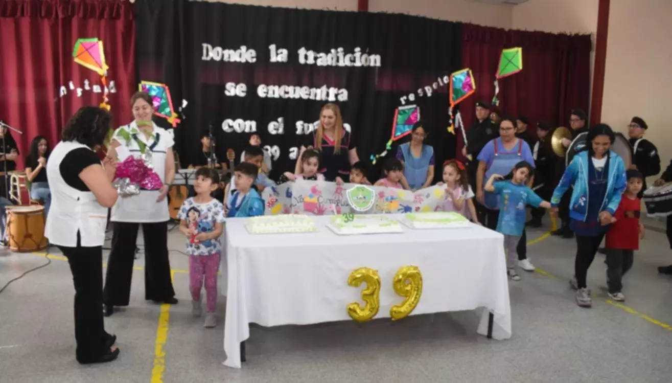 Durante el festejo se compartieron tres grandes tortas, se entregaron presentes a docentes y hubo un espectáculo de danzas folclóricas tradicionales.
