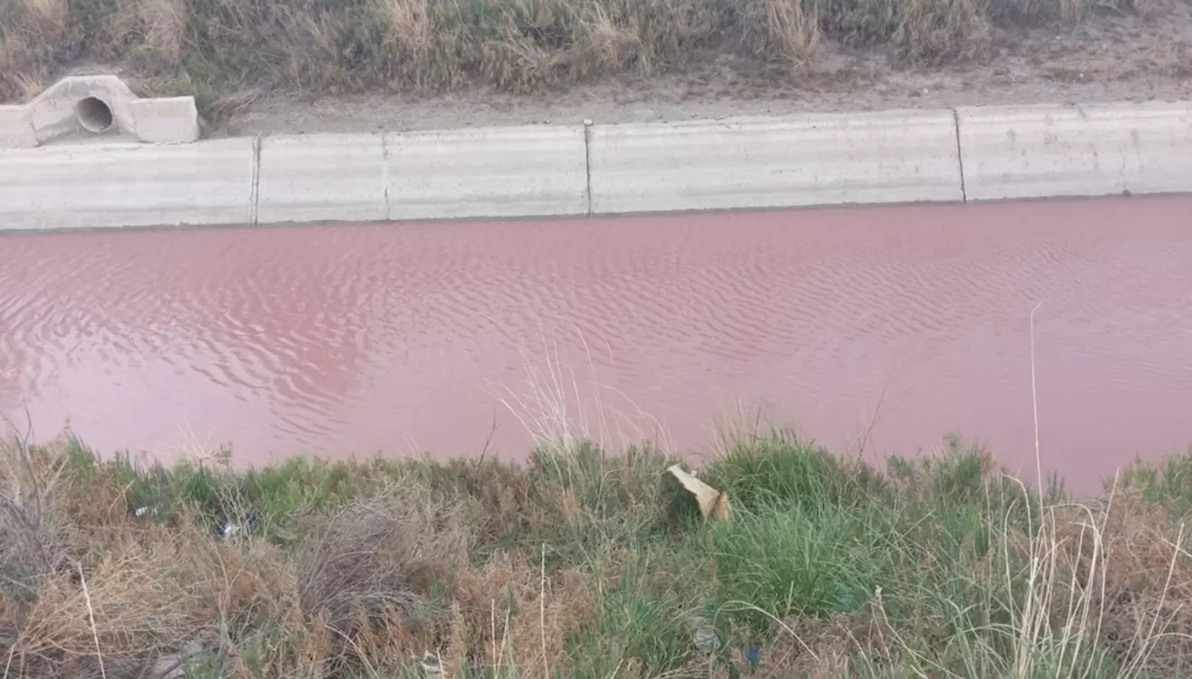 Un vecino de Trelew se comunicó con Diario EL CHUBUT a través de WhatsApp (2804 662251) para advertir sobre la presencia de fuertes olores y un color rosáceo en el agua del canal Owen.