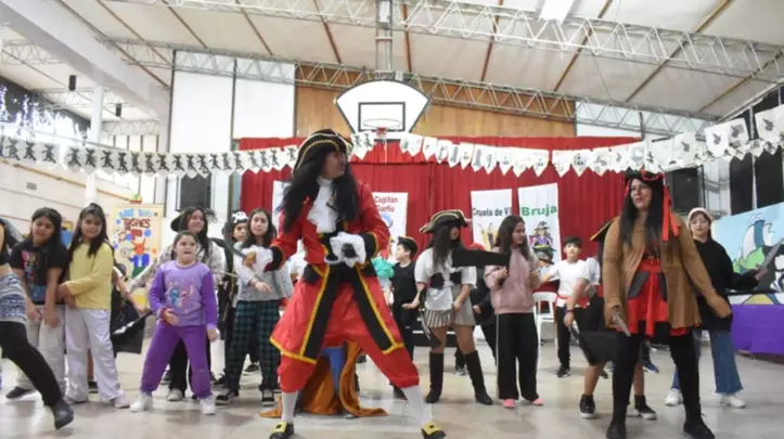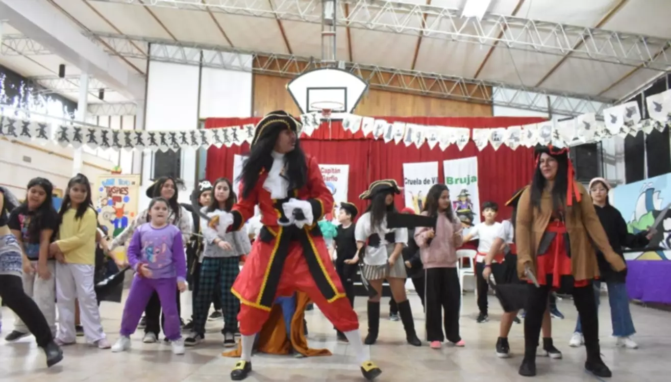Los docentes, bibliotecarios y alumnos del turno mañana presentaron una representación de villanos de cuentos clásicos, entre ellos Cruella De Vil, el Capitán Garfio, Maléfica y el Lobo Feroz, en una propuesta que combinó lectura, dramatización y disfraces.