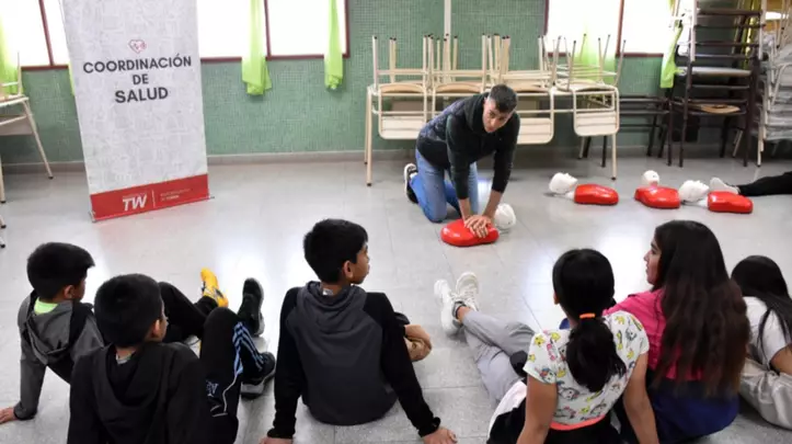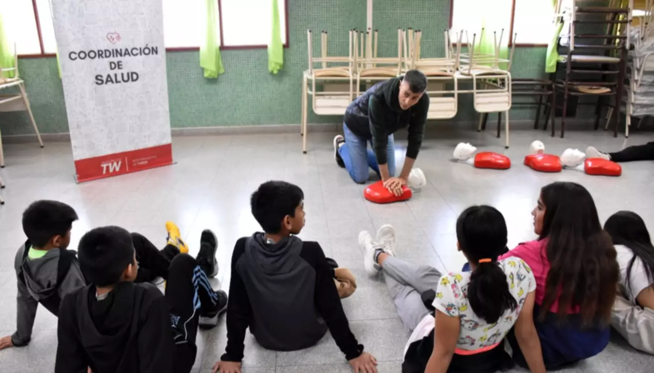 La capacitación forma parte del programa “Trelew Ciudad Cardioprotegida” y busca que más chicos sepan cómo actuar ante una emergencia.