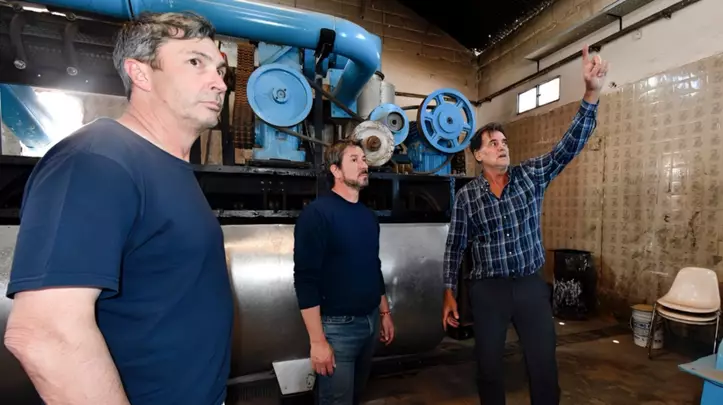 “Es una planta relacionada con la producción de aceites, productos de la pesca, es una planta que estaba próxima a abrir y tratamos de colaborar y ser el nexo con Provincia”, explicó el intendente durante la recorrida.
