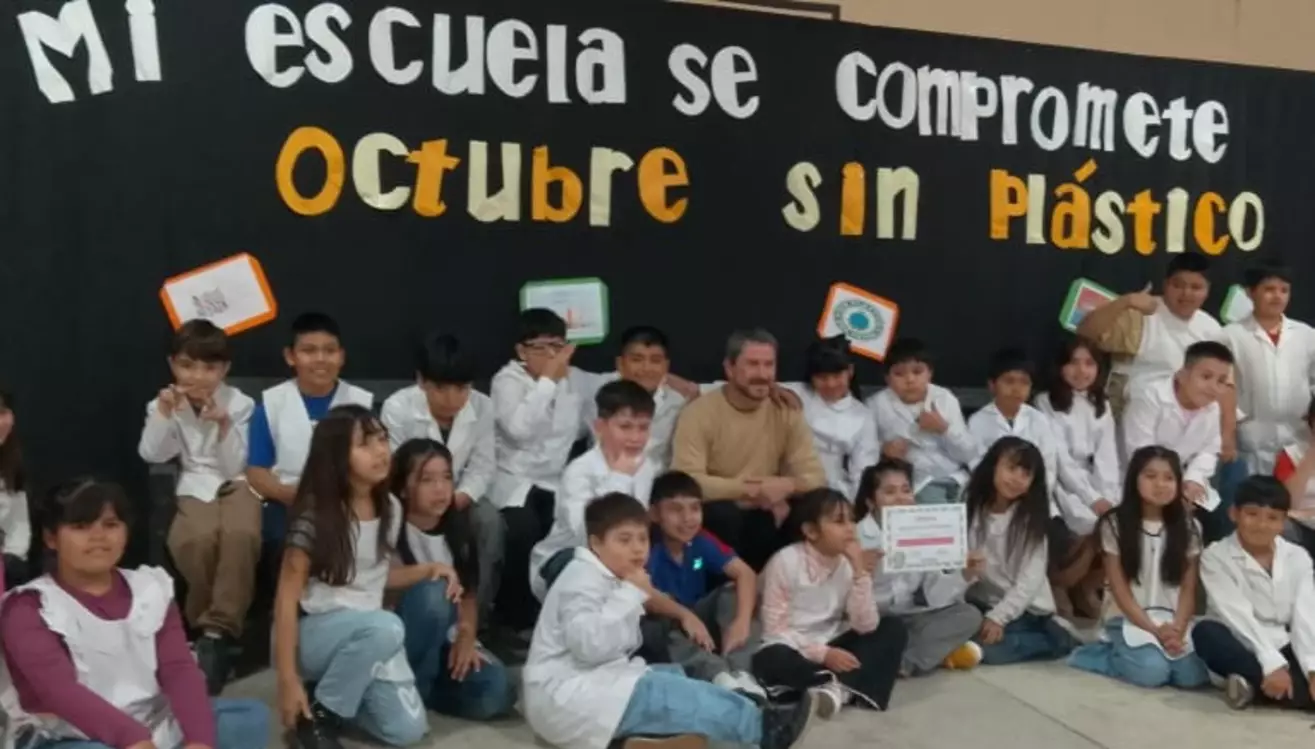 El intendente Gerardo Merino entregó los reconocimientos del concurso “Octubre sin Plástico” y felicitó a los alumnos de cuarto grado de la Escuela 195 por recolectar 2.522 kilos de plástico.