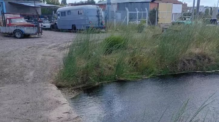 Se trata del desborde de un canal ubicado en las cercanías al barrio Guayra/Güemes de la ciudad de Trelew y a pocos metros de un hogar de niños.