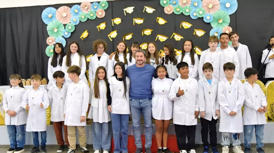 Durante su mensaje, el intendente felicitó a los estudiantes que culminaron una etapa clave de su trayectoria escolar. "Quiero felicitar a todos ustedes, chicos, por esta nueva etapa que comienzan y los invito a que sigan progresando y superándose”, expresó Merino, y remarcó la importancia de sostener los sueños y el estudio como herramienta de crecimiento personal y colectivo.