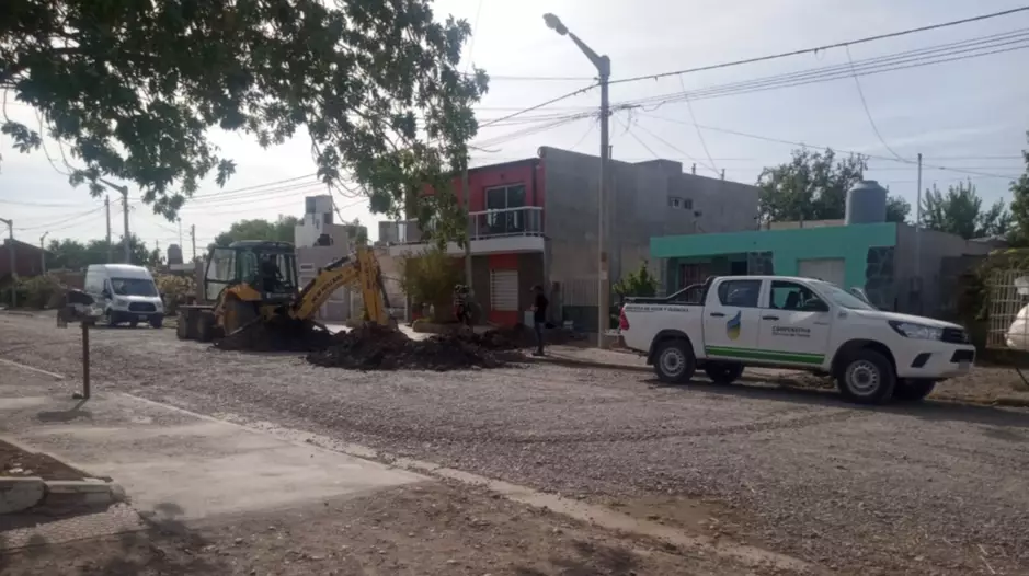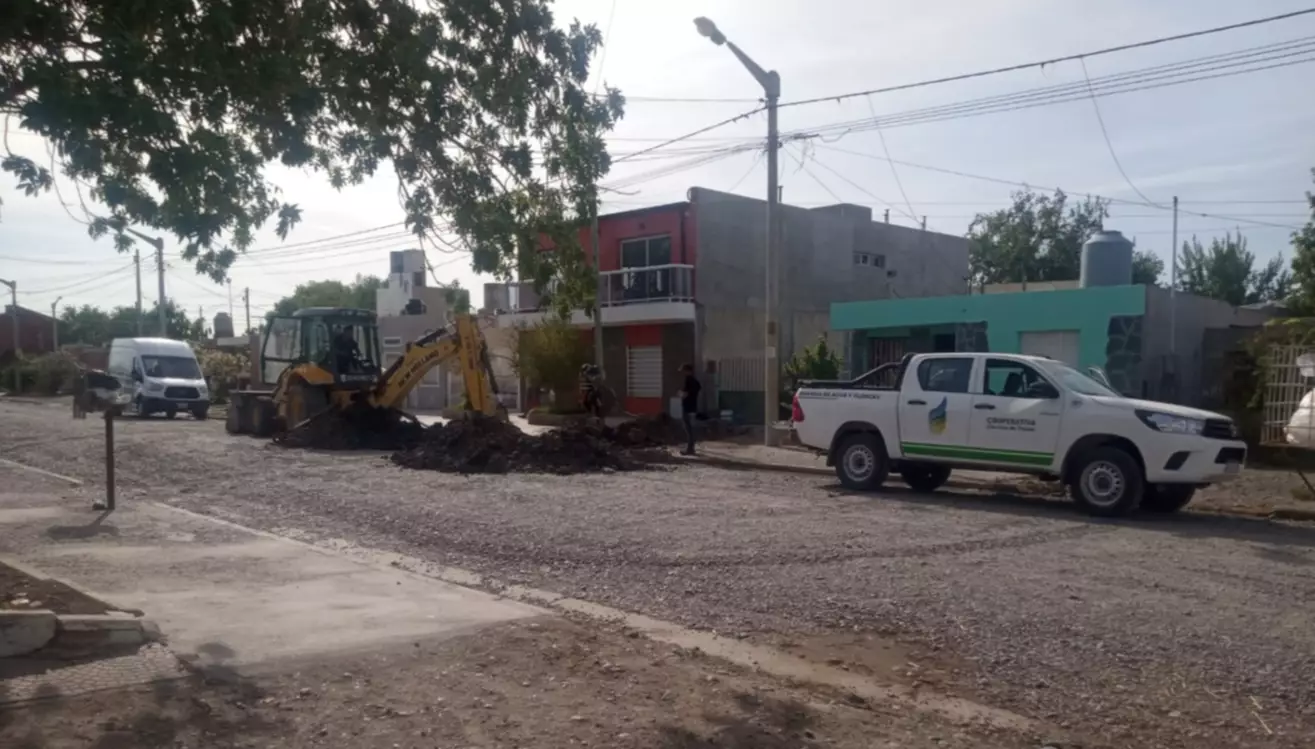Este viernes en el barrio Democracia de la ciudad de Trelew, la comisión vecinal a cargo de José Huayquilaf, junto a la Municipalidad y la Cooperativa de Agua y Cloacas, llevó adelante tareas de reparación en la vía pública para solucionar un inconveniente que afectaba a adultos mayores del sector.