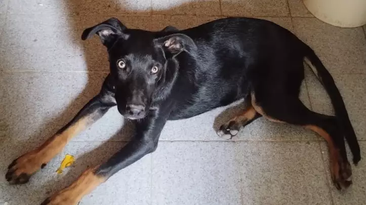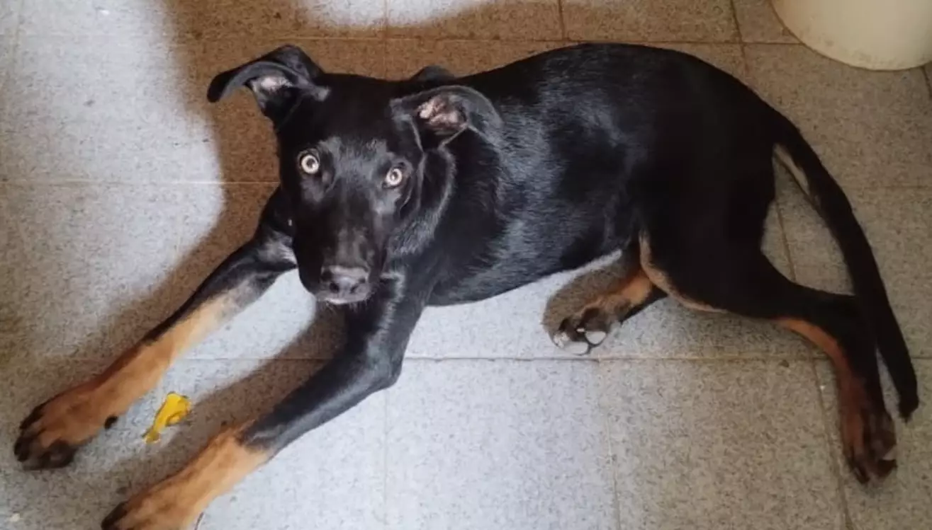 Tras varias horas, vecinos lograron contenerlo y darle tránsito. Se trata de un cachorro de aproximadamente cinco meses, color oscuro con patitas marrones, color miel, muy sociable, que llevaba un collar violeta.