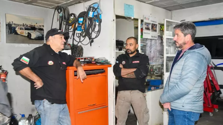 En el barrio Corradi, estuvo en Mecánica Kolev, propiedad de Juan Kolev, un histórico del automovilismo del valle que llegó a Trelew en 1975 desde Treorky y que en 1978 abrió su emprendimiento. “Es la primera vez que viene un intendente a visitarnos”, expresó.