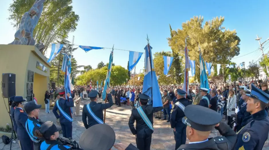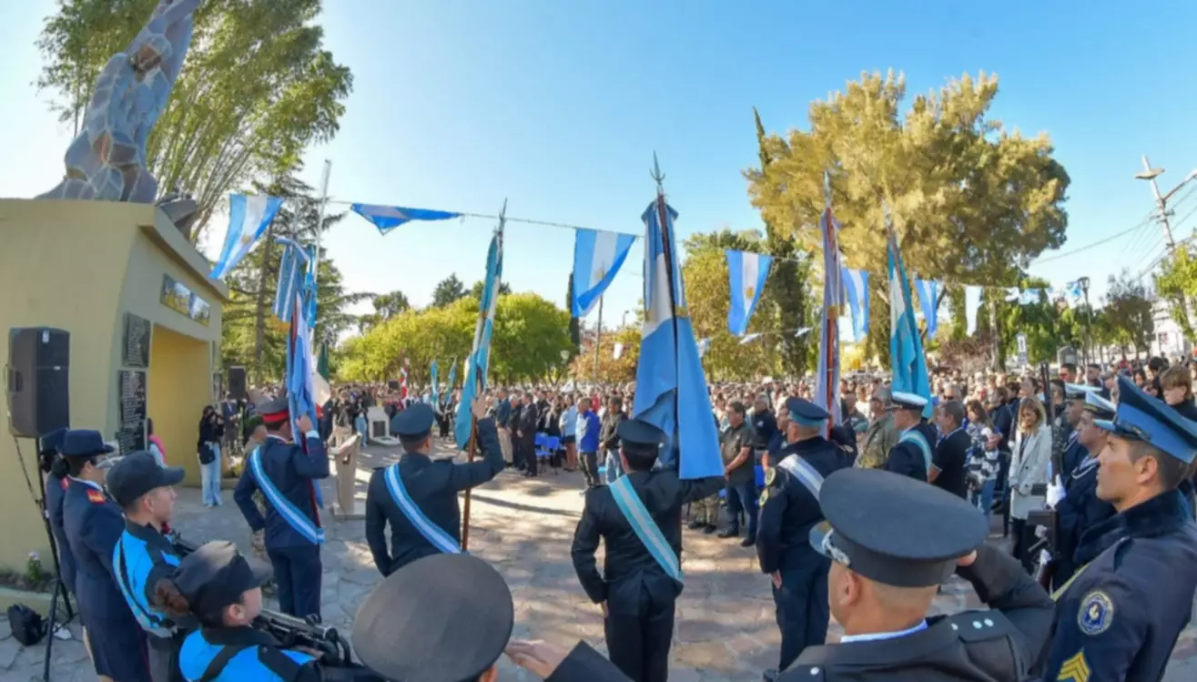 El acto central se realizó en la Plaza Centenario con la presencia de autoridades y ex combatientes. El intendente Gerardo Merino destacó el valor de la memoria y el compromiso con los héroes.