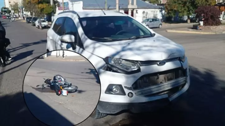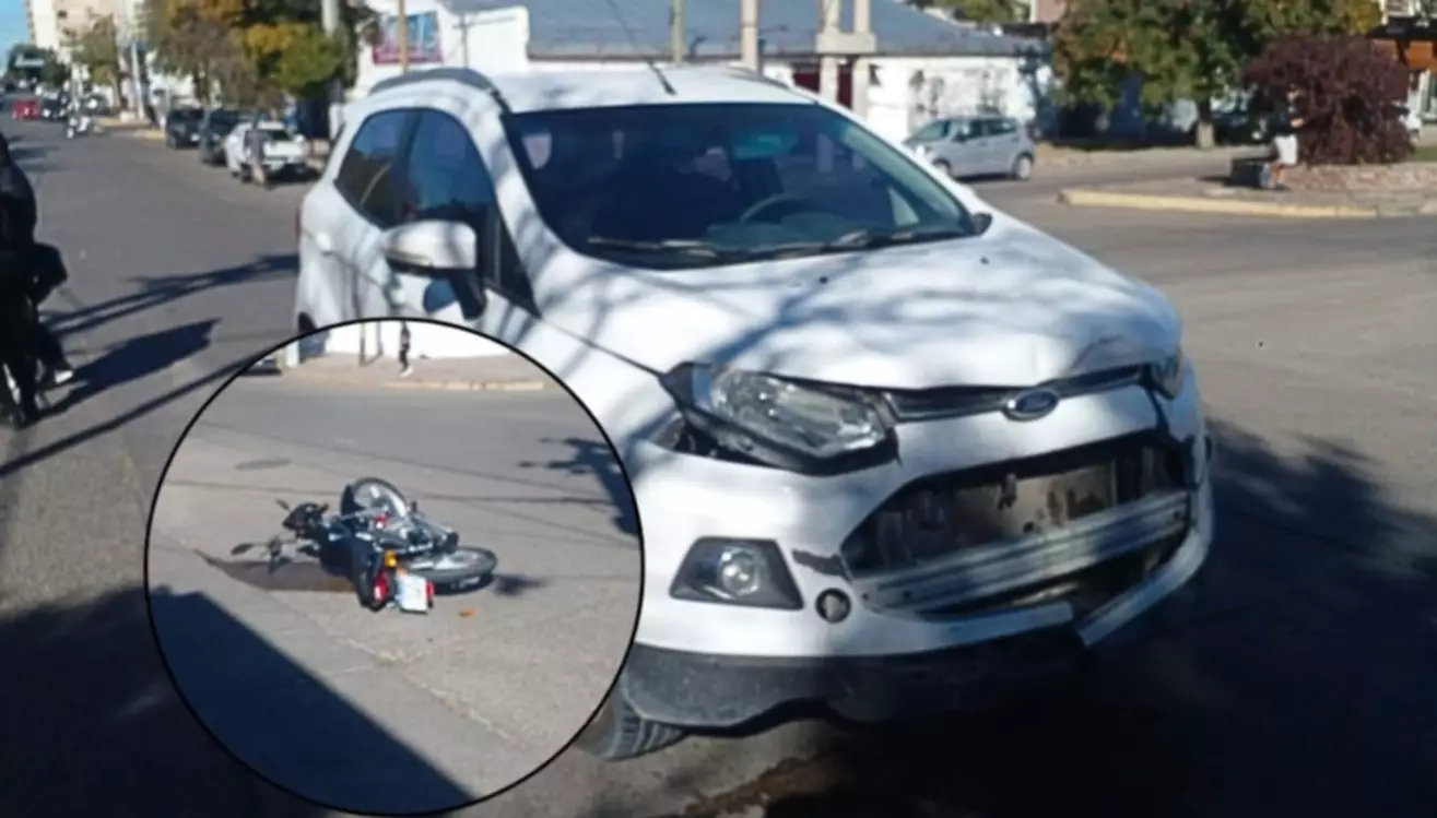 Un accidente de tránsito se registró este martes al mediodía en Trelew, en la intersección de A.P. Bell y Rawson, donde colisionaron una Ford Ecosport y una motocicleta.
