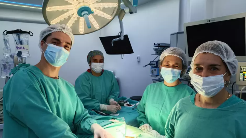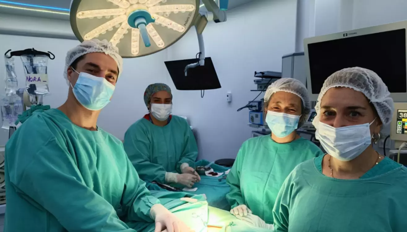 El equipo profesional a cargo de este procedimiento estuvo integrado por la Dra. Natalia Gómez, el Dr. Matías Loccisano, la Dra. Silvia Sugioka, la instrumentadora quirúrgica Adriana y el técnico de I&S Medical, Manuel Mansilla.