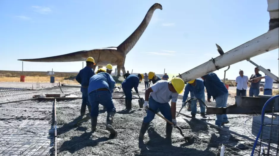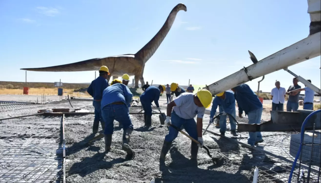 La Municipalidad de Trelew comenzó este lunes la colocación del hormigón para la construcción de la platea en la que se erigirá el Centro de Visitantes del ‘Patagotitan Mayorum’. La obra se encuentra emplazada en el acceso norte de la ciudad. Cuenta con una inversión de más de 53 millones de pesos y un plazo de obra de 180 días.